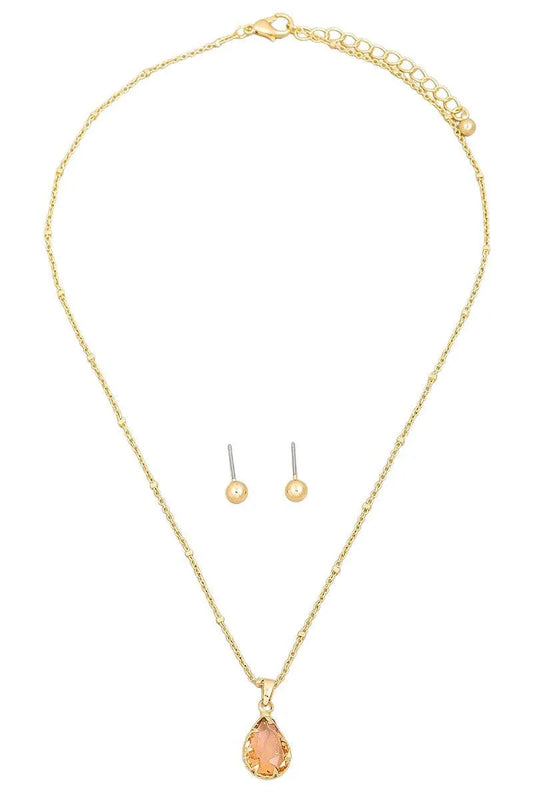Crystal Teardrop Necklace & Small Ball Earring Set