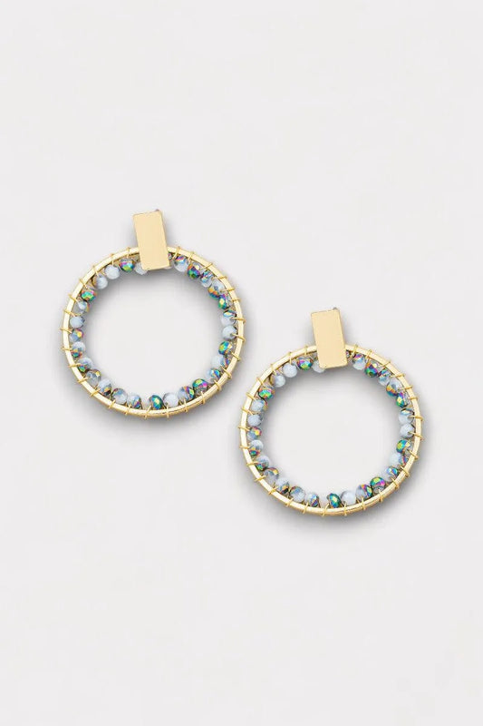 Circle Glass Inner Bead Push Back Closure Earrings
