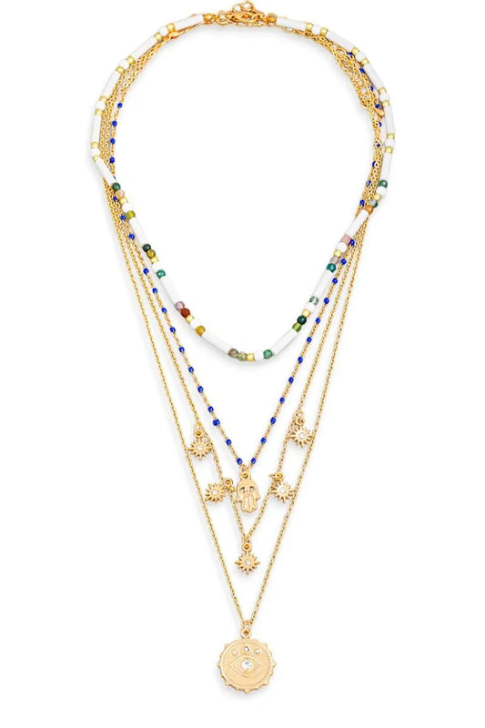 Four Layer Colorful Beads Evil Eye Pendant Necklace
