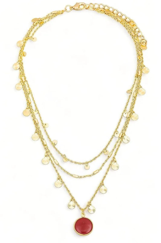 Ethnic Layer Chain Circle Rhinestone Coin Necklace