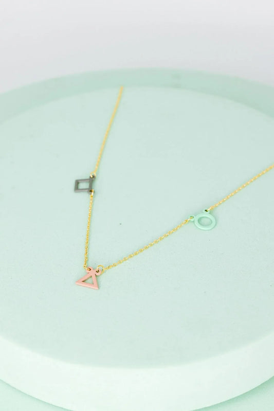 Dainty Rope Chain Oval Charm Necklace Pentagon Earring Set